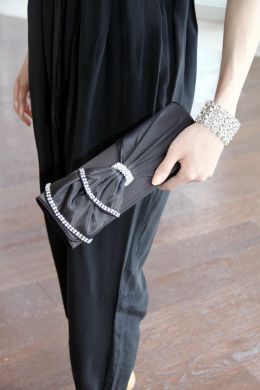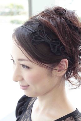フェミニンModeにまとめるなら 黒サテンのリボンカチューシャで