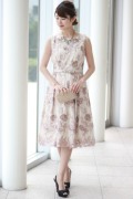 ~【USインポート】フェミニンベージュ刺繍Fit&フレアドレス~