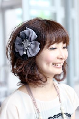 ヘッドドレスもベージュ×グレイのコーデで華やかに