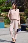 ベアタイプのパンツ、ふんわりブラウスのセパレートなので授乳時も安心して、