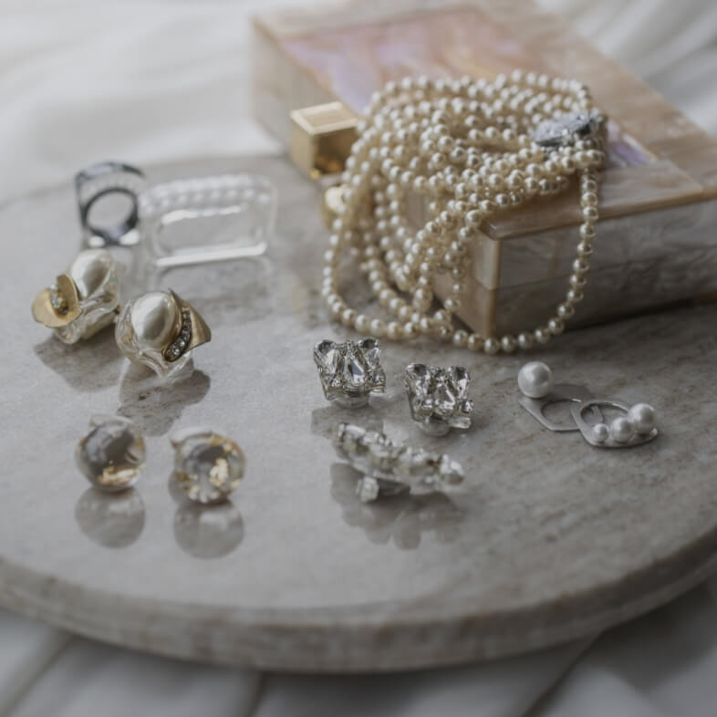 ヴィンテージやモードなジュエリーブランドを中心に、時を経た美しさと、洗練されたモダンな魅力を併せ持つアクセサリーを丁寧にセレクト。「母=パール」だけではない、FANTADRESSだからこそ叶う新しいドレスアップの可能性をお届けします。ドレスとの調和を大切にしながら、お顔まわりから手元まで、全体のバランスを見極めて。ひとつひとつのジュエリーが、ドレスに新しい世界観を与えてくれる。特別な一日にふさわしい、記憶に残る美しさをあなたに。