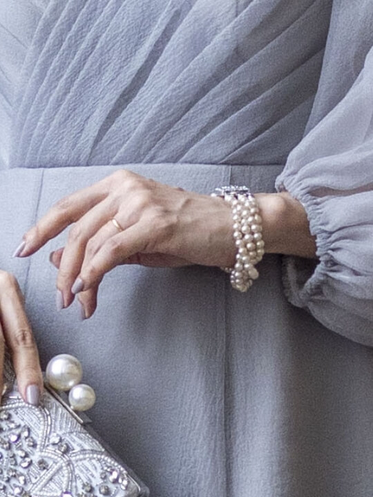 「ituwa」と共に生み出した、特別な一着。クチュールの美しさを引き立てるために、靴やバッグ、ジュエリーまですべてを一点一点セレクトしました。“母としての二度目のウエディングドレス”にふさわしい、ただ一人のためのドレスアップを。