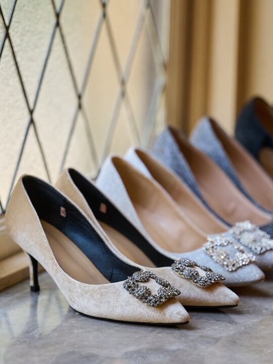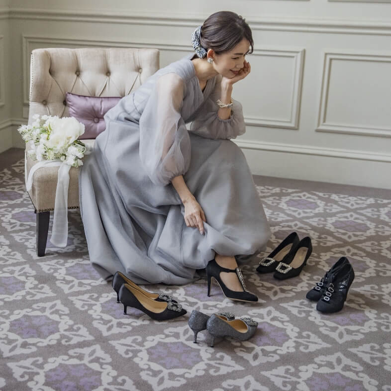 ロングドレスの足元は、全体の印象を大きく左右します。FANATDRESSがご提案するのは、ドレスの色に寄り添う、繊細な色味と質感の靴。ロングドレスの裾からふと覗く瞬間に、美しい存在感を放ち、全体のコーディネートと自然に調和する、そんな一足をセレクトしています。 アクセサリーやドレスの雰囲気まで丁寧に見極めながら、トータルで仕上げるドレスアップを。