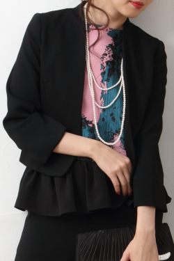 JK-06:ノーカラーシンプルブラックショートジャケット