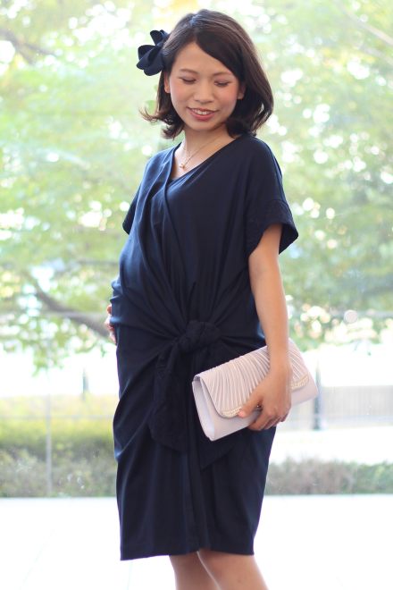 インナードレスの上にラップタイプのドレスを着用いただきます。お腹の大きさに合わせて結び方を調整できるので妊娠初期から後期・授乳期まで安心の着心地です。 インナードレスのストラップは取り外すことが出来るので、授乳時にはラップ部分を外して楽に授乳頂けます。 |