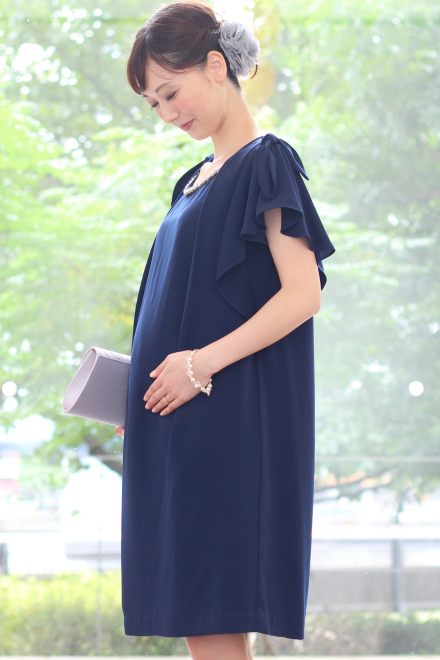 軽やかな質感の生地でゆったりお召いただけます。袖周りはフレアスリーブになっていて締め付け感がありません。また肩のリボンがアイキャッチになりお腹の大きさが目立ちにくいのがポイントです。