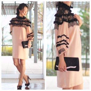 夏の終わりのお呼ばれには、ニュアンスレースとボリュームお袖で秋感を