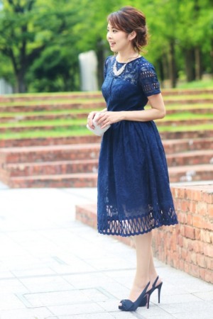 6.フィット&フレアの王道ドレス!もネイビーだから甘くなり過ぎない
