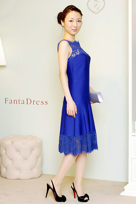 貼り感&鮮やかなロイヤルブルー「TADASHI SHOJI」。着丈103㎝の美シルエットドレス