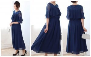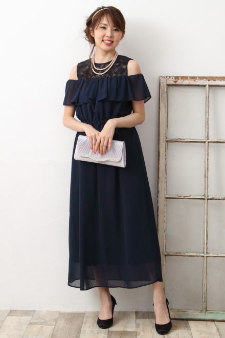 Yoana(ヨアナ)~【cest-lavie】~ニュアンスネイビーお袖レース&シフォンマキシドレス~ コーデ3点セット